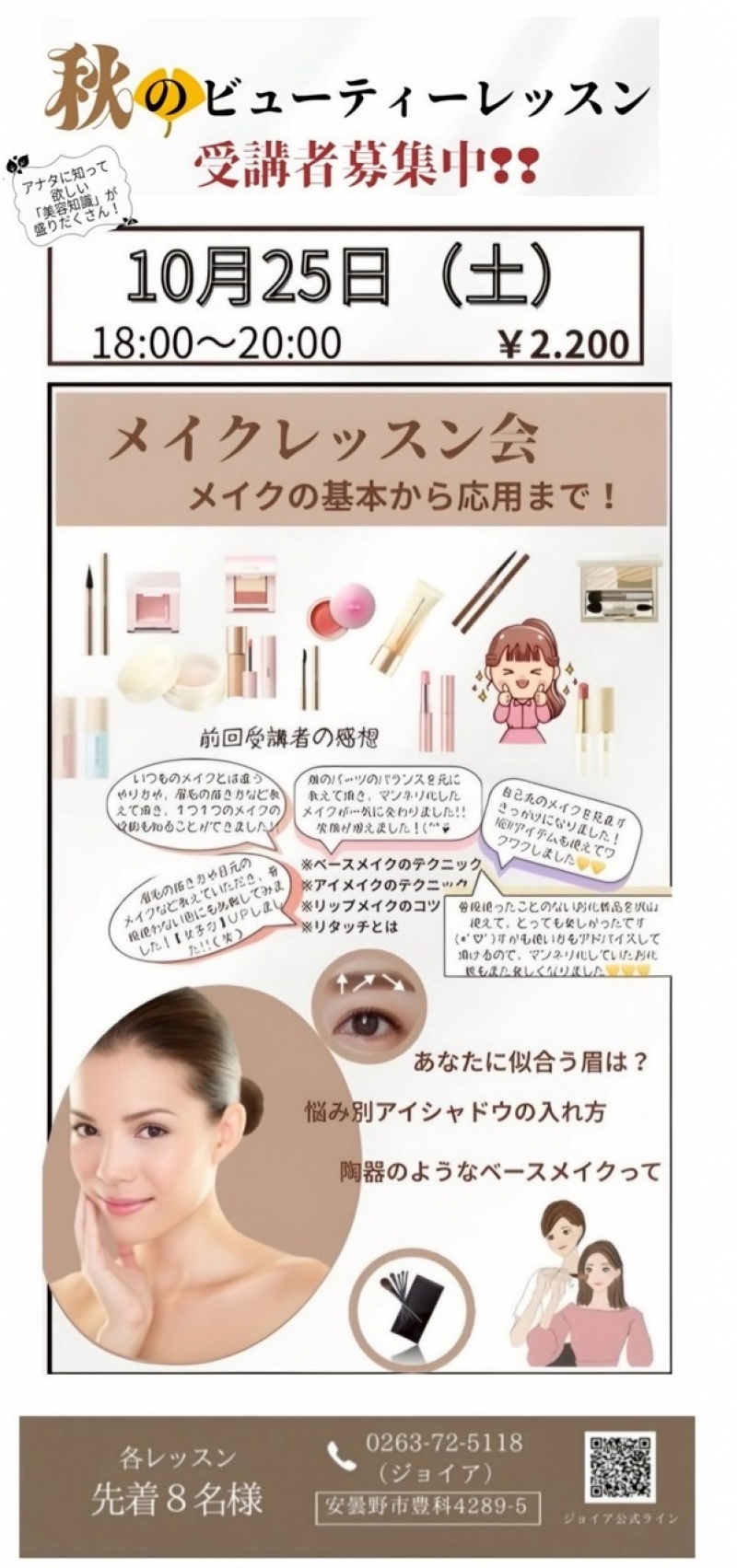 【秋のビューティーレッスン会】安曇野市スタジオPi 安曇野市ジョイア