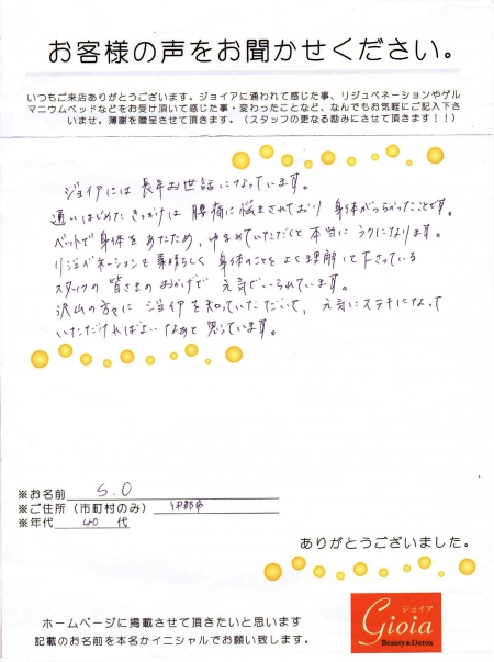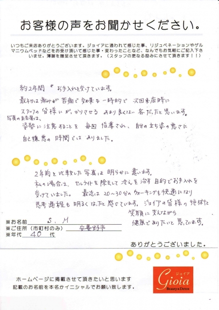 リジュベネーション施術 S様 安曇野市40代のお客様