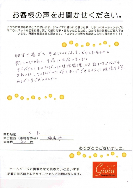 リジュベネーション施術 K様 塩尻市40代のお客様