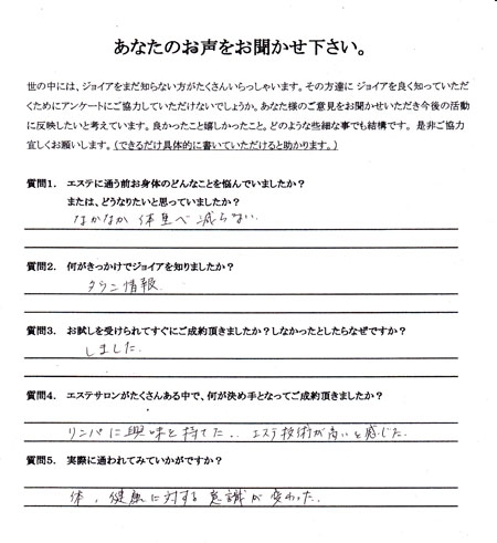 - リンパに興味を持てた。エステ技術が高いと感じた。