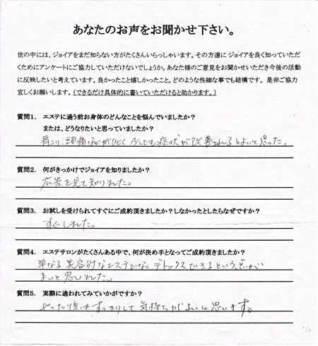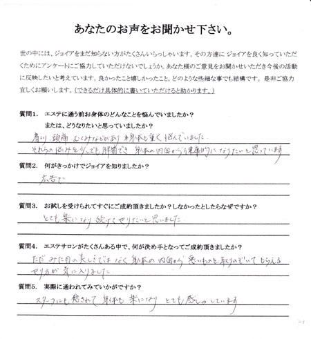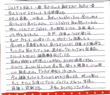 身体のことで悩んでいる多くの人がジョイアと出会い笑顔で過ごせるようになって欲しいと思います。